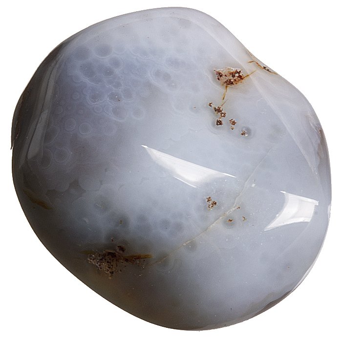 Tromlovaný kamínek šedého achátu na výrobu kamenné bižuterie.