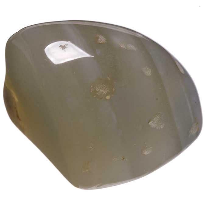 Tromlovaný kamínek šedého přírodního achátu na výrobu kamenné bižuterie.