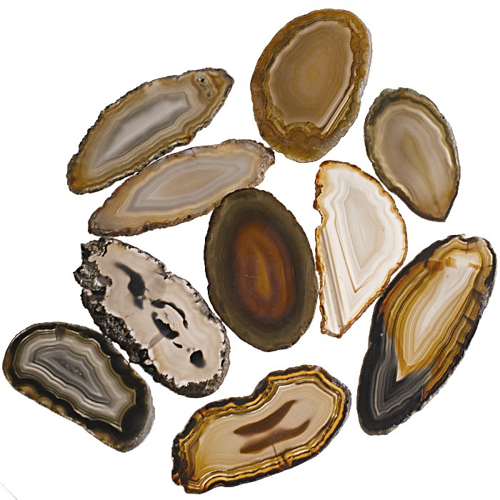 Tenké leštěné plátky přírodního achátu na kreativní tvorbu kamenné bižuterie a další použití.