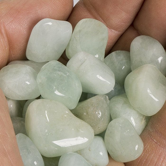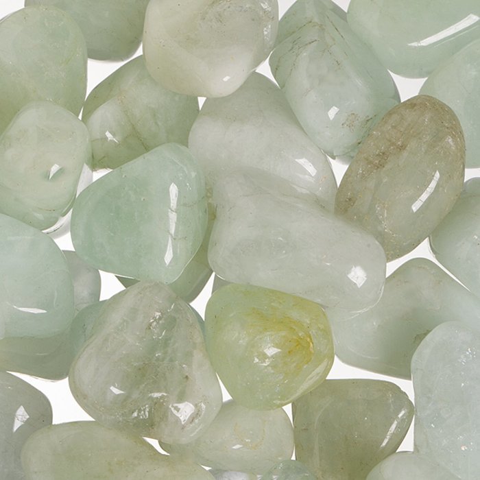 Tromlovaný světle zelenkavý akvamarín vhodný do DIY šperků, kamenné bižuterie a na další kreativní tvorbu i pro sběratele.