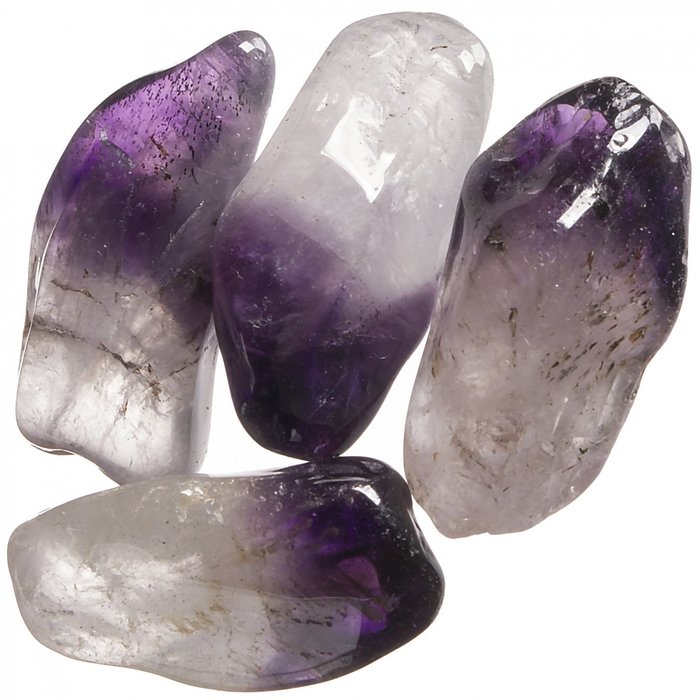 Tromlovaný dvoubarevný ametyst, čtyři kamínky na tvorbu bižuterie, dekorací, do sbírky..