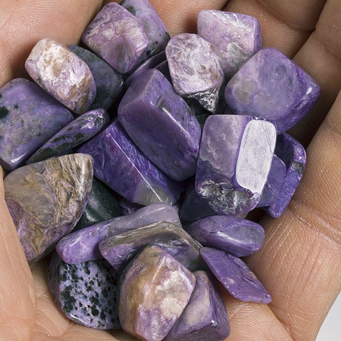 Tromlovaný čaroit na tvorbu kamenné bižuterie nebo jako ukázka do sbírky minerálů.