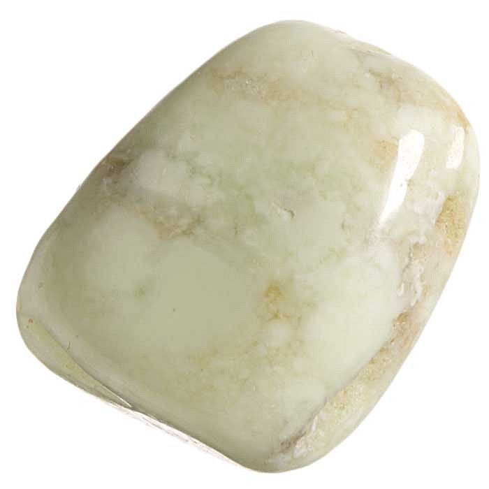 Tromlovaný kamínek citronového chryzoprasu na výrobu kamenné bižuterie nebo do sbírky.
