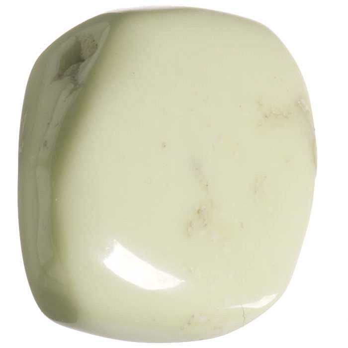 Tromlovaný kamínek citronového chryzoprasu na výrobu kamenné bižuterie nebo do sbírky.