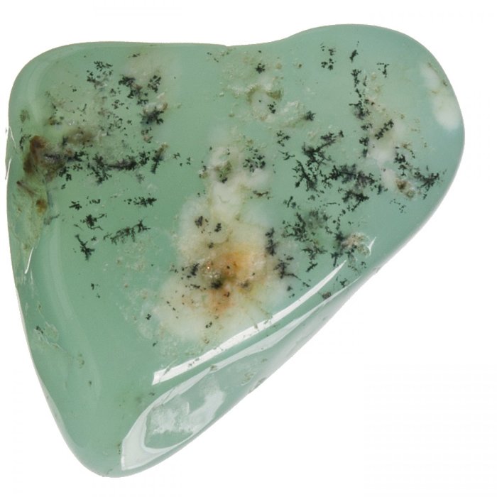 Tromlovaný kamínek chryzoprasu na výrobu kamenné bižuterie nebo do sbírky.