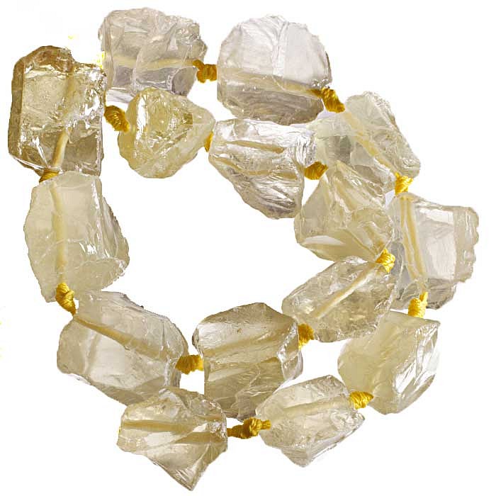 Vrtané kamínky surového citrínu na šňůře.