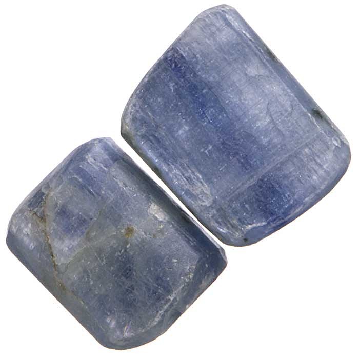 Pár tromlovaných kamínků disthenu (kyanitu) na výrobu kamenné bižuterie.