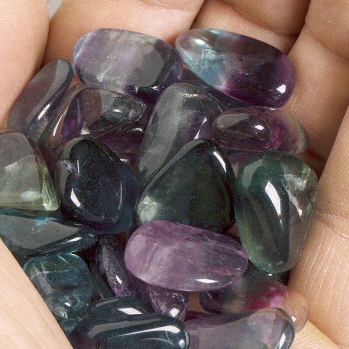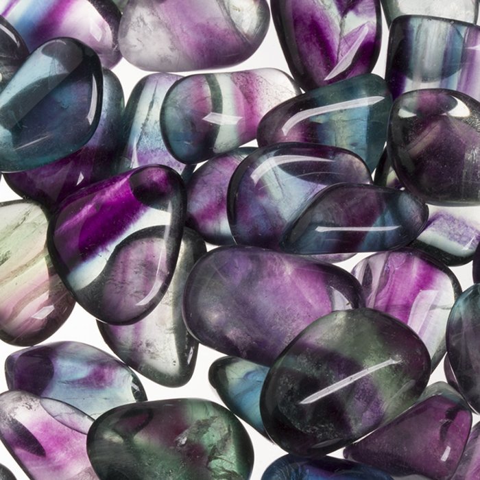 Tromlovaný kamínek duhový fluoritu.