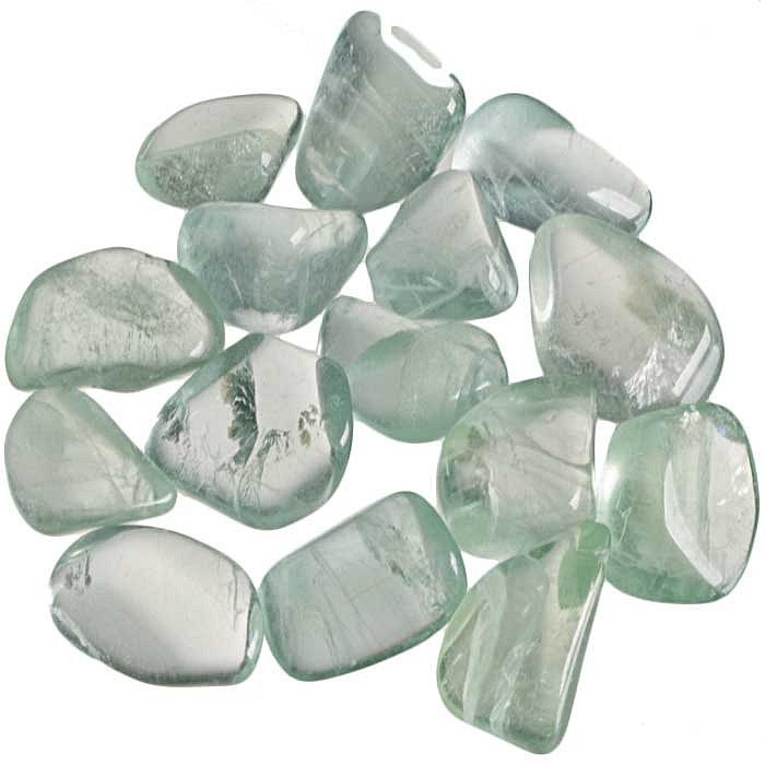 Patnáct leštěných kamínků zeleného fluoritu na výrobu šperků, bižuterie či do sbírky.