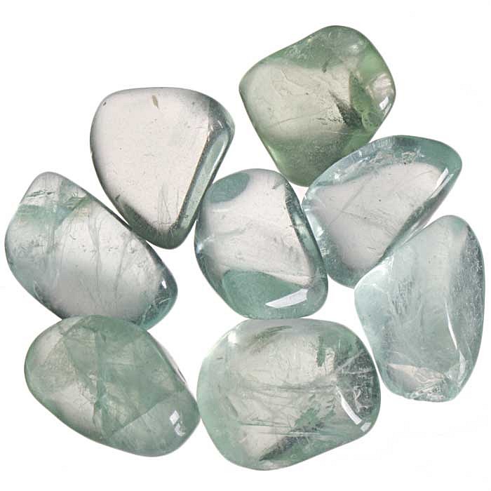 Osm leštěných kamínků zeleného fluoritu na výrobu šperků, bižuterie či do sbírky.
