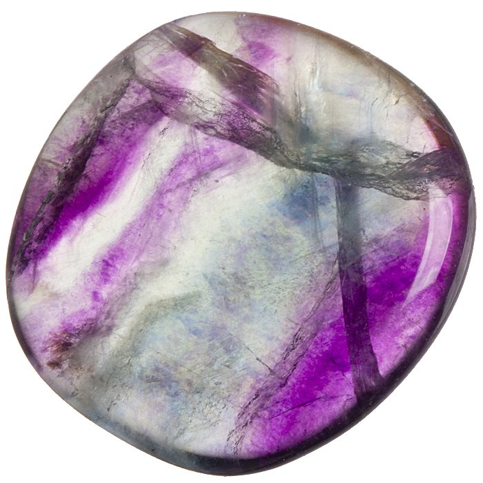 Tromlovaná, leštěná placička duhového fluoritu vhodná do šperku nebo jako hmatka.