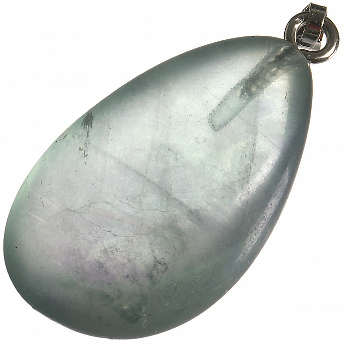 Fluoritový přívěsek. Hlazený neleštěný valounek s očkem pro snadné zavěšení na řemínek, šňůrku nebo řetízek.