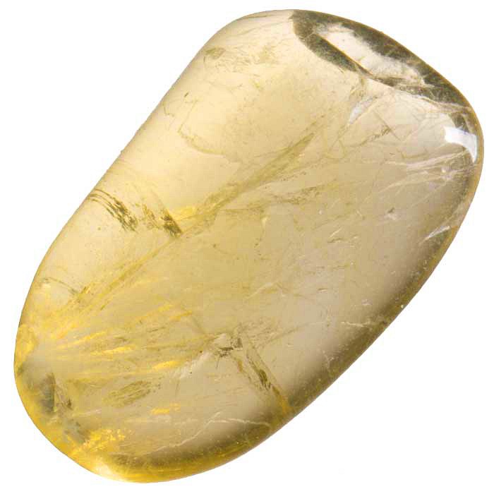 Tromlovaný kamínek žlutého fluoritu.