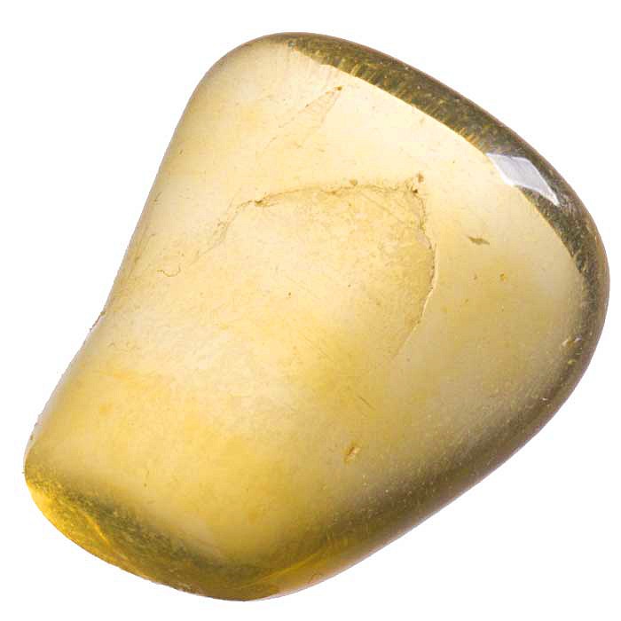 Tromlovaný kamínek žlutého fluoritu.