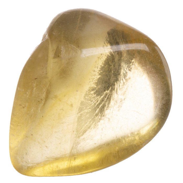 Tromlovaný kamínek žlutého fluoritu.
