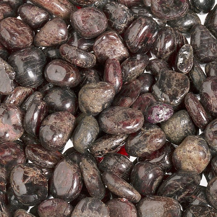Tromlované valounky z granátovu (pyropu) na tvorbu kamenné bižuterie, dekorací, ezoteriku a další kreativní použití.