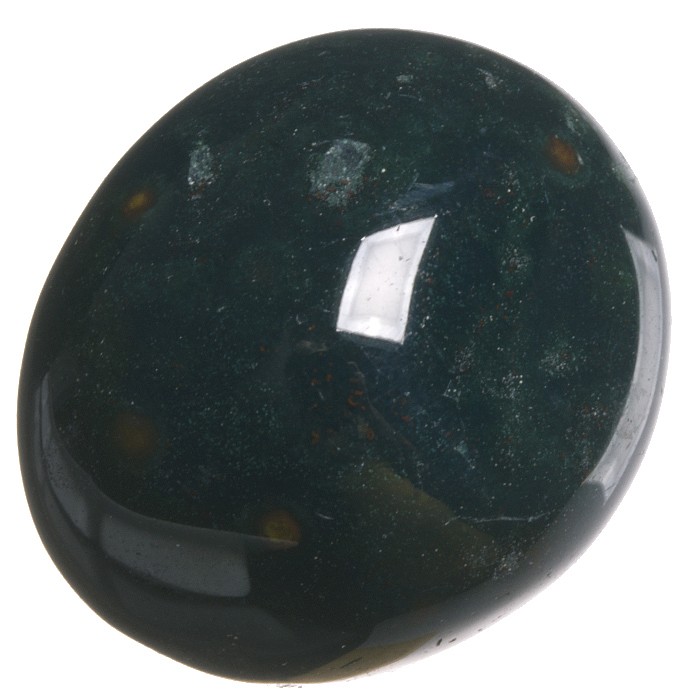 Tromlovaný kamínek tmavě zeleného heliotropu.