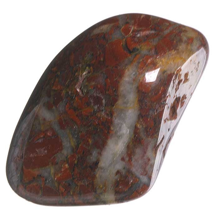 Tromlovaný kamínek červeného brekciového jaspisu.
