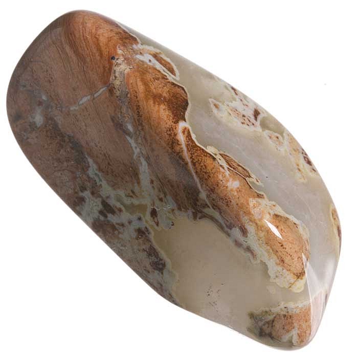 Tromlovaný kamínek z pestrého brekciového jaspisu.