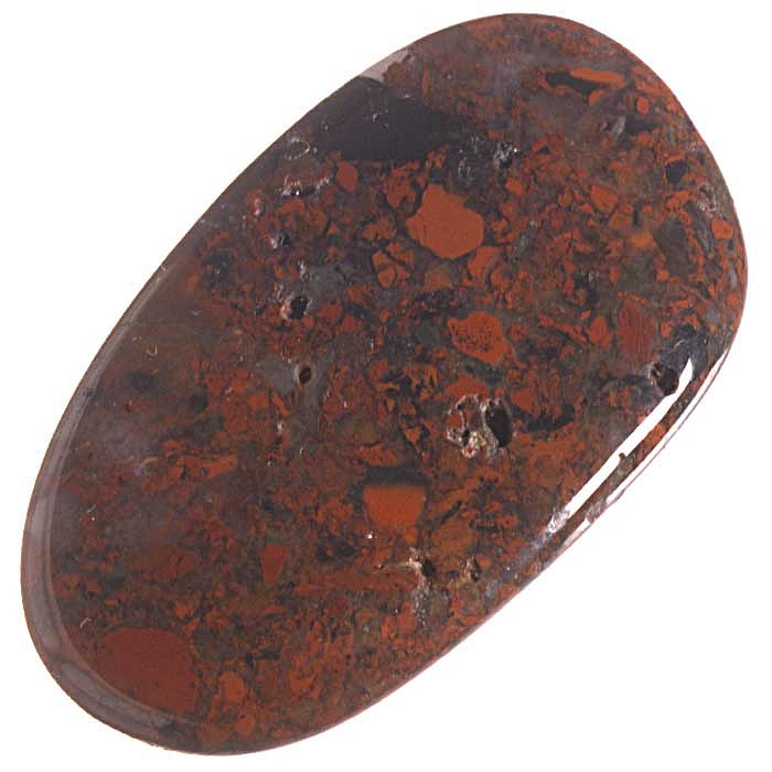 Tromlovaná placička jaspisu brekcie je vhodná do šperku, jako masážní kámen nebo hmatka.