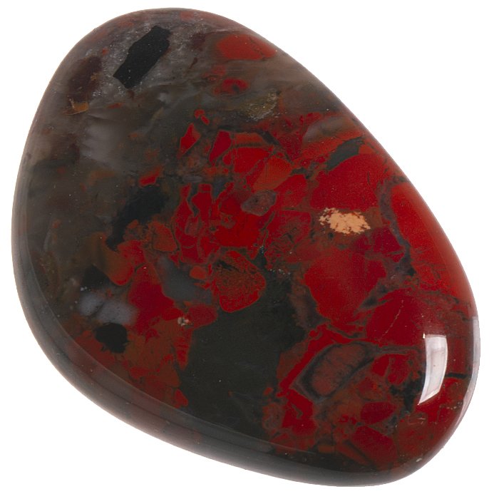 Tromlovaná placička jaspisu brekcie je vhodná do šperku, jako masážní kámen nebo hmatka.