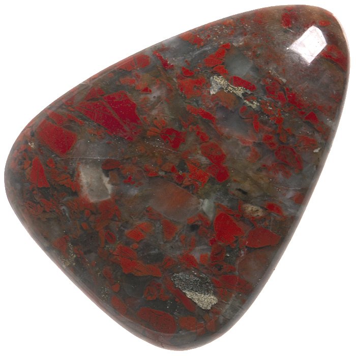 Tromlovaná placička jaspisu brekcie  vhodná do šperku, jako masážní kámen nebo hmatka.