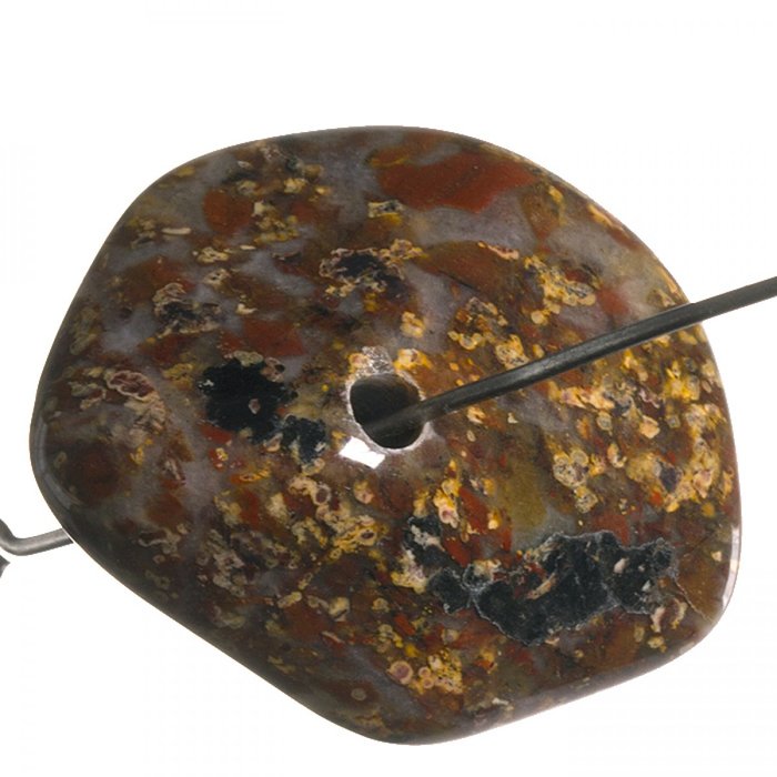 Jaspis brekciový, vrtaný přívěsek 28 mm
