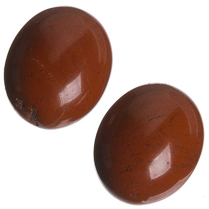 Pár kabošonků z červeného jaspisu o rozměrech 9x6 mm.