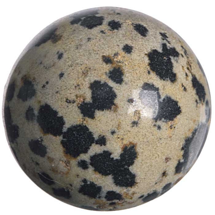 Kulatý kabošon řezaný z leštěné koule dalmatinového jaspisu.