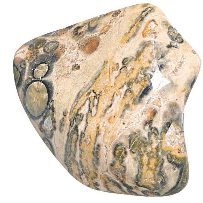 Tromlovaný kamínek leopardího jaspisu na výrobu kamenné bižuterie.
