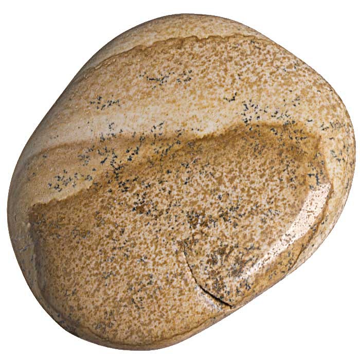 Tromlovaná placička jaspisu obrázkového s výraznou kresbou.