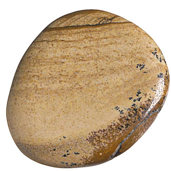 Tromlovaná placička jaspisu obrázkového s výraznou kresbou.