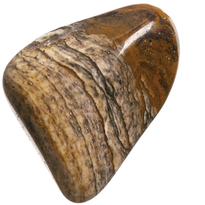 Tromlovaný kamínek obrázkového jaspisu na tvorbu kamenné bižuterie, dekorací nebo do sbírky minerálů.