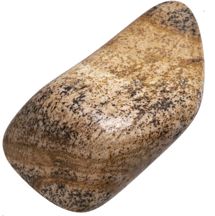 Tromlovaný kamínek obrázkového jaspisu na tvorbu kamenné bižuterie, dekorací nebo do sbírky minerálů.