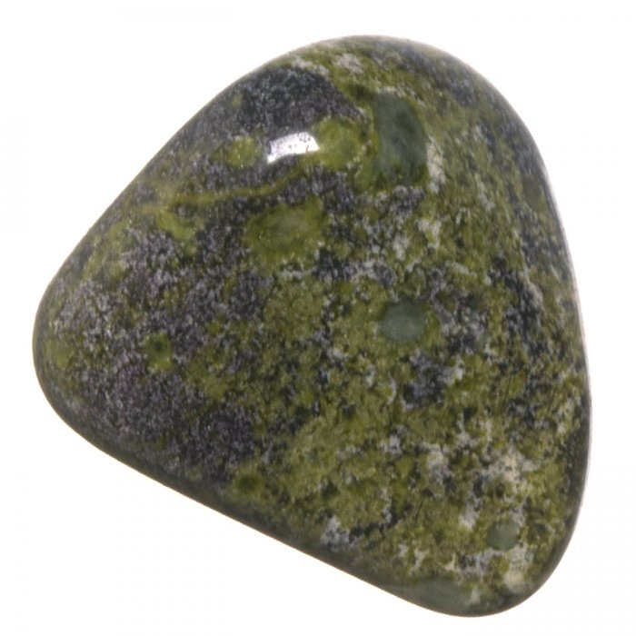 Tromlovaný kamínek jaspisu s epidotem.