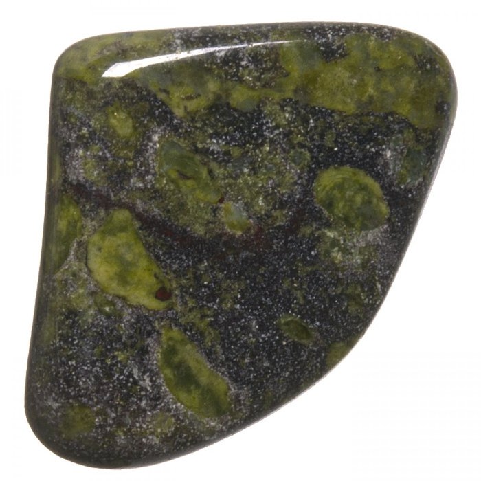 Tromlovaný kamínek jaspisu s epidotem.