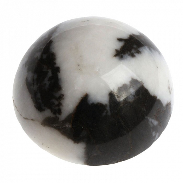 Kulatý kabošon řezaný z leštěné koule jaspisu zebra.