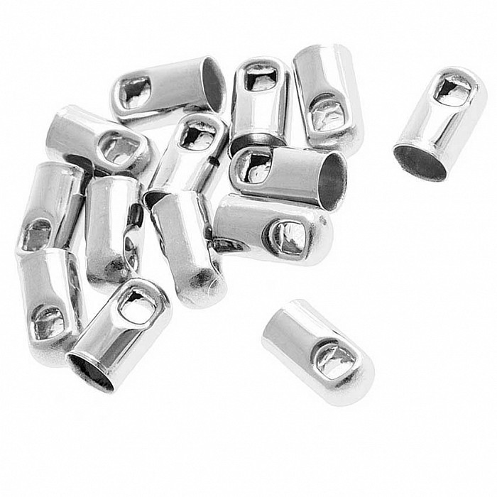 Koncovka platinové barvy k vlepení návlekového materiálu. Do této koncovky se vejde kůže 3 mm.