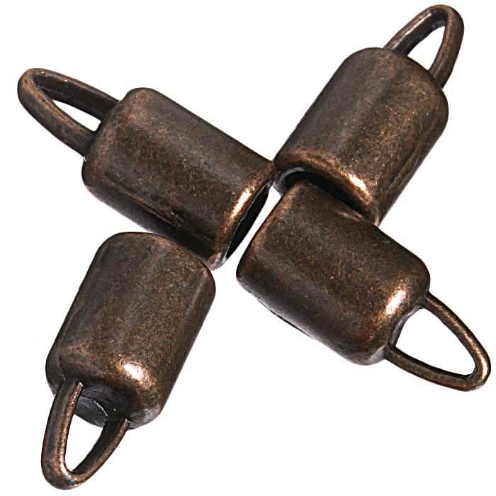 Velká koncovka měděné barvy k vlepení návlekového materiálu. Do této koncovky se vejde kůže nebo jiný návlekový materiál o průměru 4 mm.