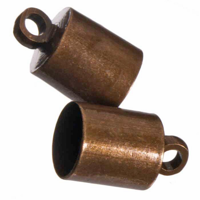 Velká koncovka měděné barvy k vlepení návlekového materiálu. Do této koncovky se vejde kůže nebo jiný návlekový materiál o průměru 5 mm.