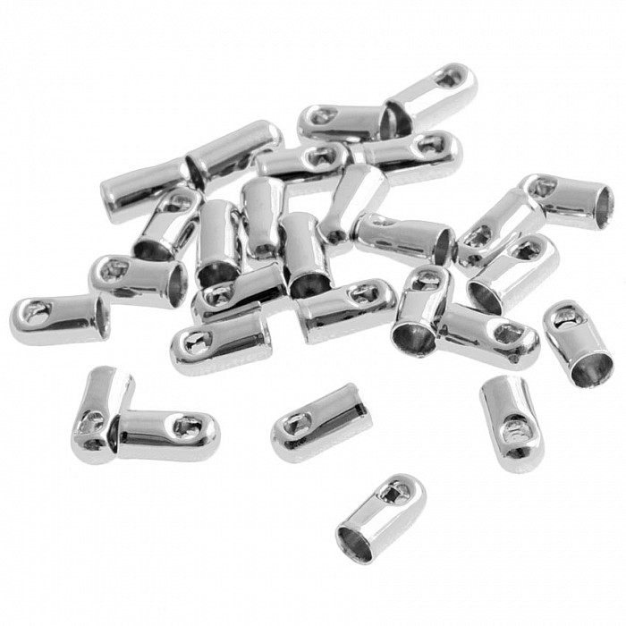 Koncovka platinové barvy k vlepení návlekového materiálu. Do této koncovky se vejde kůže 1,5 mm, ale voskovaná šňůrka 1,5 mm kvůli nepodajnému konci ne.