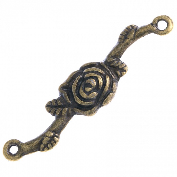Kovové konektory starozlaté barvy ve tvaru větvičky s růží. Konektory jsou oboustranné.