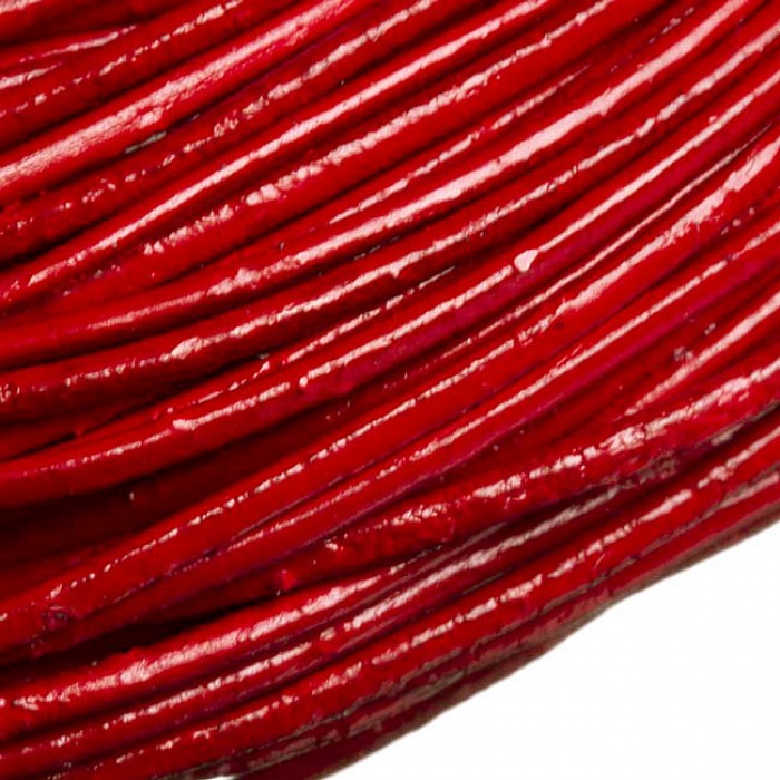 Kulatý kožený řemínek (kord) o průměru 1 mm. Červená barva, kruhový průřez.