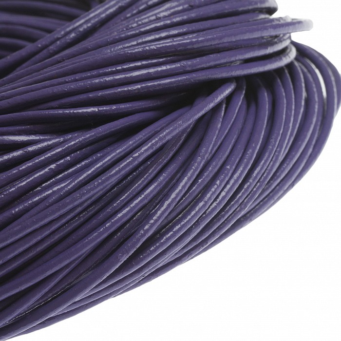 Kulatá přírodní kůže (kord) o průměru 2 mm. Fialový odstín, kruhový průřez.