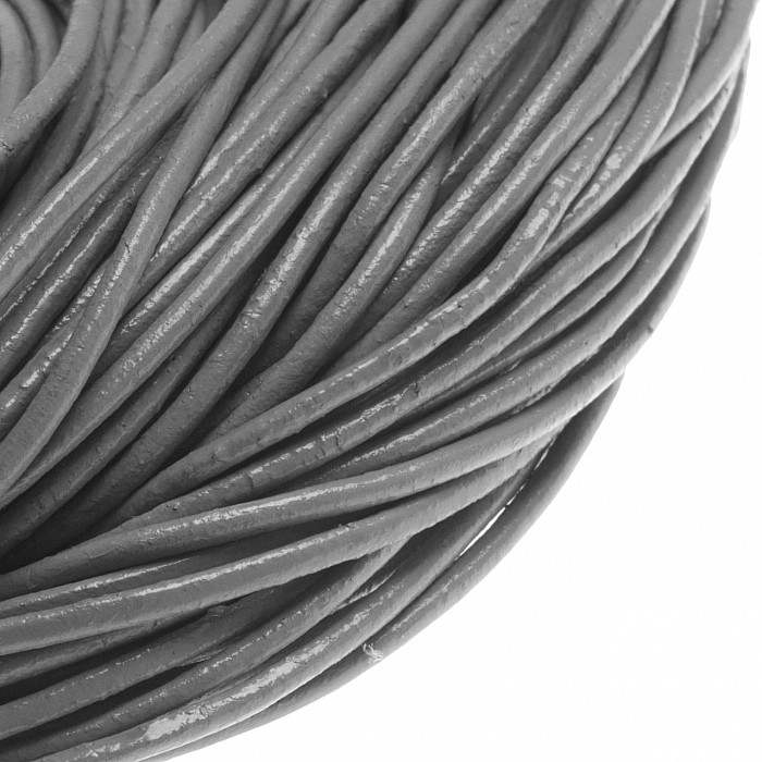 Kulatá přírodní kůže (kord) o průměru 2 mm. Odstín šedý, kruhový průřez.