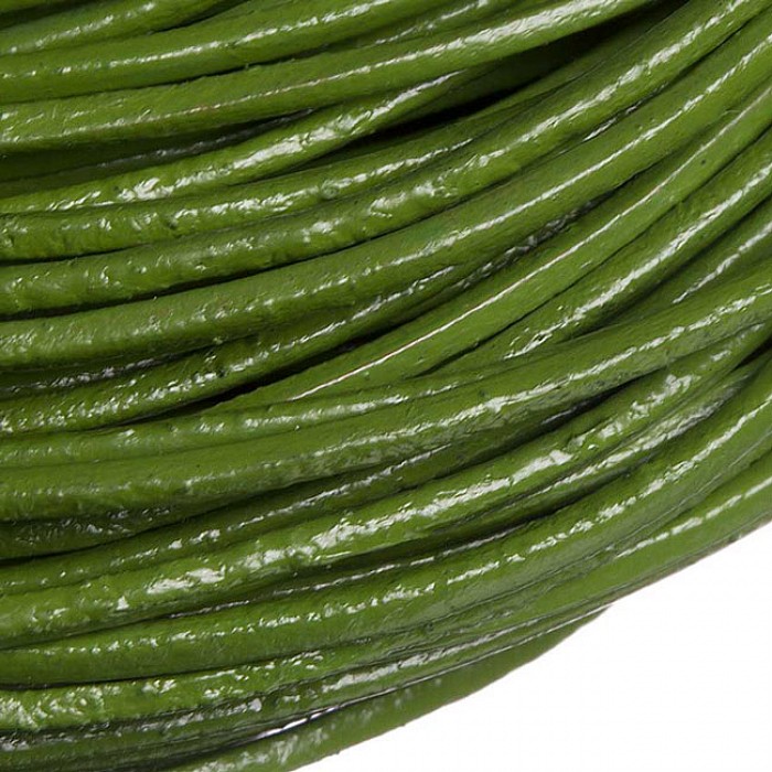 Kulatý kožený řemínek (kord) o průměru 1 mm. Zelená barva, kruhový průřez.