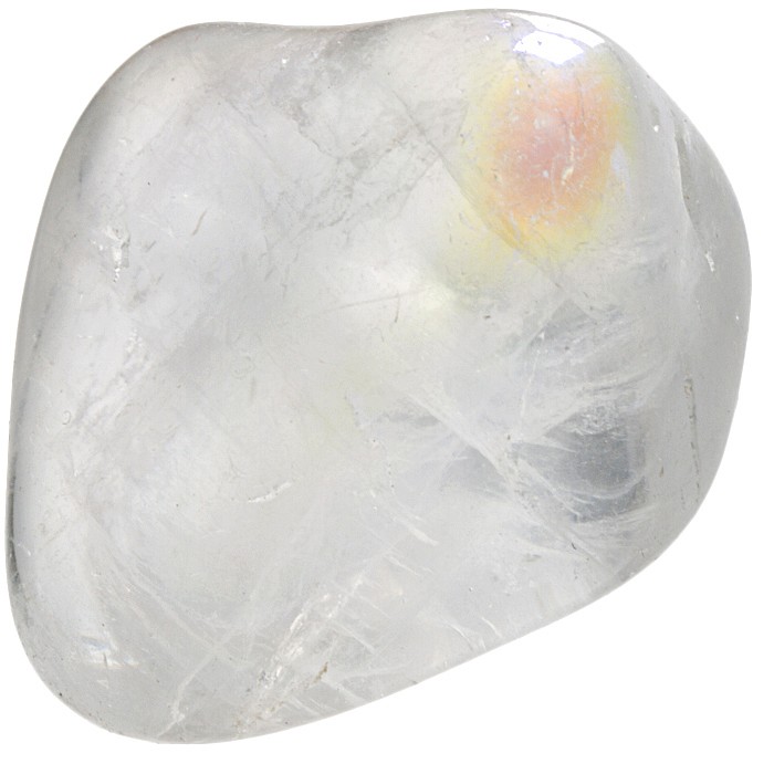 Tromlovaný kamínek křišťálu s povrchovou úpravou "Aqua Aura"- pokovení mikroskopickou vrstvičkou titanu, zlata nebo mědi. Tato úprava způsobuje irizující efekty, kámen se proměňuje jako duhové poloprůhledné zrcadlo.