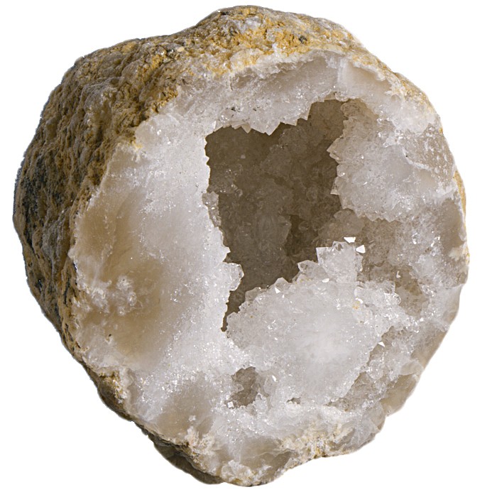 Křišťálová půlená geoda, leštěný řez. Sbírkový kámen.