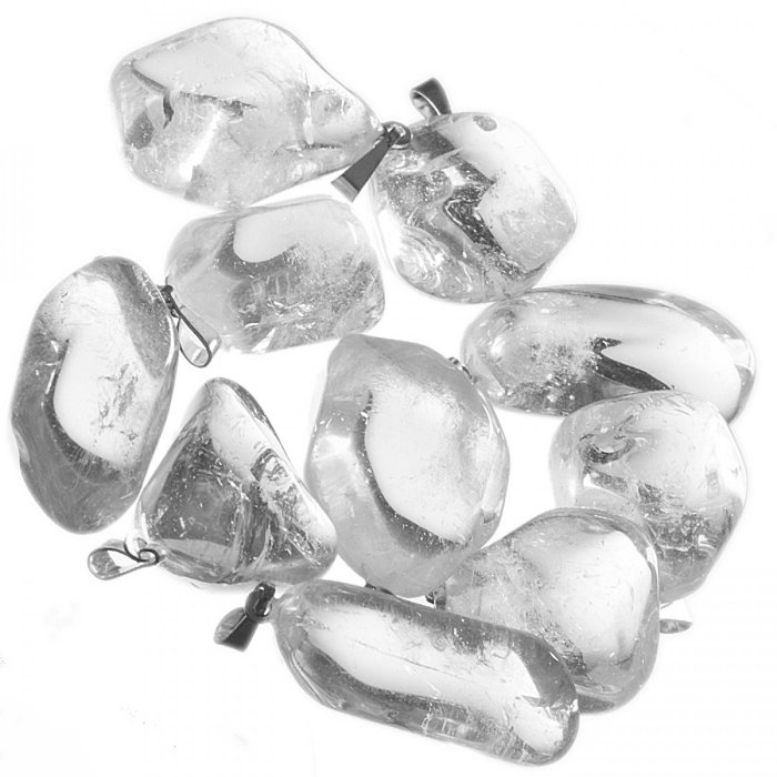 Přívěsky z ametystu s kovovým očkem.