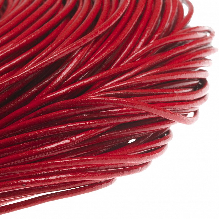 Kulatá přírodní kůže červené barvy a průměru 2 mm.